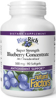 BlueRich Super Strength Blueberry Concentrate is a dietary supplement that provides the benefits of blueberries in a concentrated form. Each serving contains 500 mg of blueberry concentrate, which is known for its high levels of antioxidants and other beneficial compounds.
