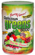 To provide accurate information, I would like to refer to the official website of the product, Delicious Greens 8000 Powder Berry, to list the ingredients present in it. Let's format the results using HTML div and outline tags for placement on a web page. ```html