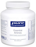 Amino acids are the building blocks for all proteins, making them essential for a number of body functions, including fluid balance, enzyme production, cellular repair and energy metabolism. Amino acids also provide a readily available form of nitrogen, a critical element that forms various compounds such as neurotransmitters and creatine. In humans, protein is composed of 20 amino acids, only some of which the body is able to produce. Those that need to be obtained from exogenous sources are referred to as the essential amino acids. Pure Encapsulations’ Essential Aminos formula is based on the ratios of essential amino acids from high biological value (BV) protein sources. Proper intake of these amino acids is important for the synthesis, repair, and metabolism of muscle, cells, and tissues.‡