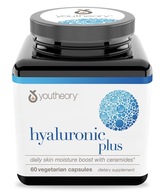 Youtheory® Hyaluronic Plus with ceramides is a powerful hydrating complex that helps boost skin moisture levels.* This water-loving formula is designed to help strengthen the skin’s natural protective barrier to lock-in moisture and minimize water loss.* Two capsules per day supports happy, healthy and nourished skin.*