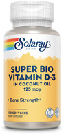 Each Solaray Super Bio Vitamin D-3 softgel provides 125 mcg (5000 IU) of D-3 in a coconut oil base. Medium chain triglycerides in coconut oil may help enhance absorption of this fat-soluble vitamin, part of Solaray's commitment to high quality, bioavailable supplements that work better for your radiant health.